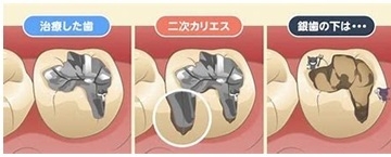 詰め物やかぶせ物が外れた歯は内部が露出しており、虫歯が再発 したり、進行したりする可能性が高まります。