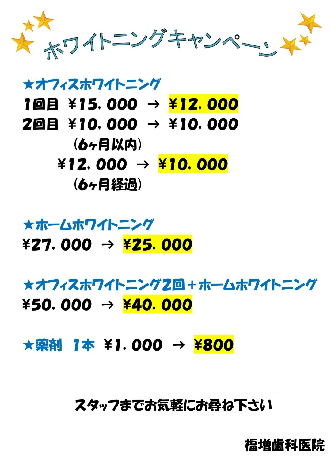 6月1日より9月30日までホワイトニングキャンペーンを行います。