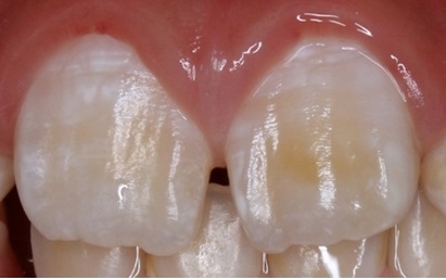 歯が生えた直後から見られる白、黄色、茶色の変色で、歯の質が弱いためむし歯になりやすく、進行もしやすいのが特徴です。